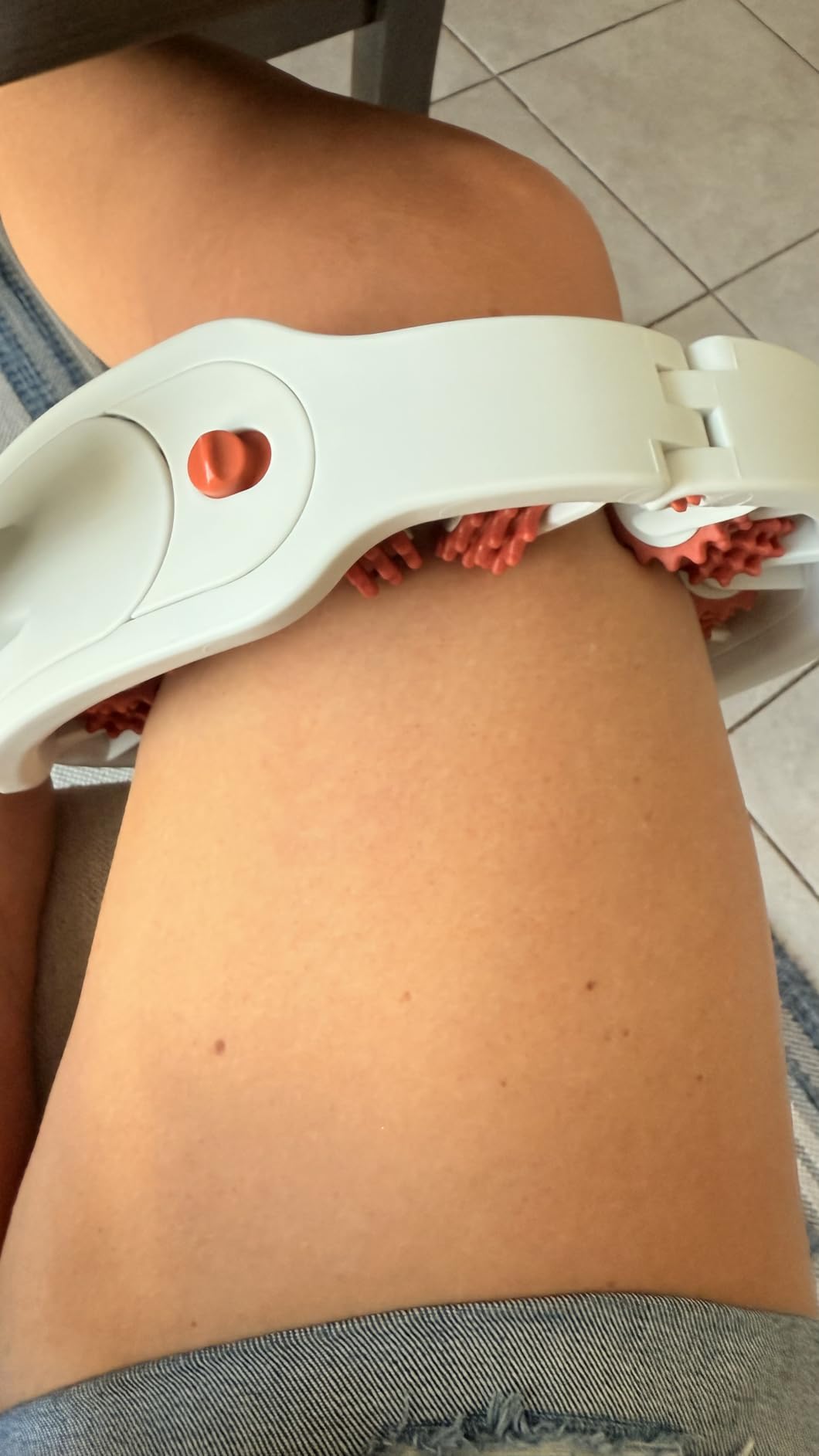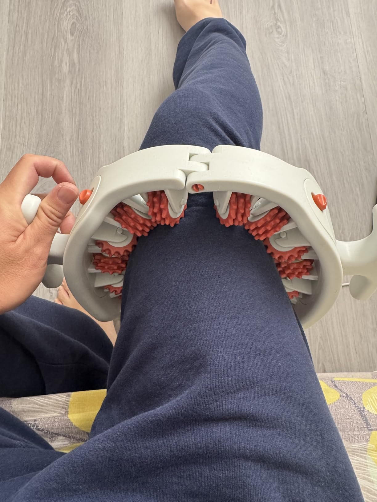 The textured dot-gear rollers reach deep into tight muscles for effective relief. Made from soft, elastic material to provide strong pressure while preventing discomfort or bruising.